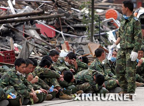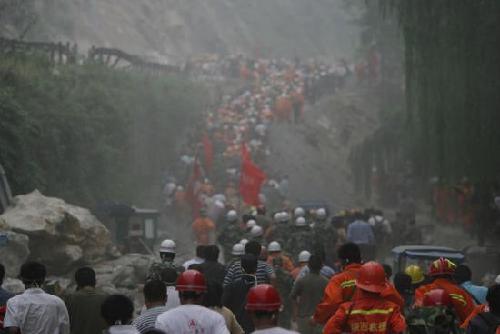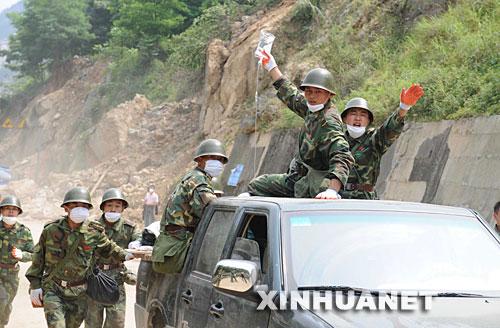 北川救援人员及灾民因堰塞湖紧急撤离 2008年5月17日,四川北川,北川救援的人员突然接到对讲机传来紧急撤退的命令,命令中称天上直升飞机发现北川县城后侧山顶上的茶坪水库出现裂缝,可以引发决堤,瞬间,在武警与警察地安排下,上万人的救援大军急速撒离。