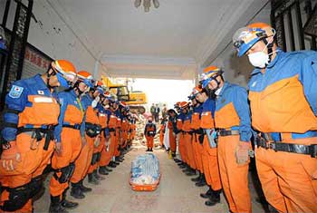 QUOTE(玫瑰党 @ 2008年05月18日 Sunday, 12:48 AM) 日本人礼貌过头全球闻名 但此时的一鞠躬 让人心动 5月17日,日本搜救人员向遇难者遗体默哀。当日7时25分,日本救援人员历经16个小时的搜救,在四川青川县乔庄镇一处倒塌的六层楼房废墟中挖出两具遇难者遗体。 [snapback]2243162[/snapback]