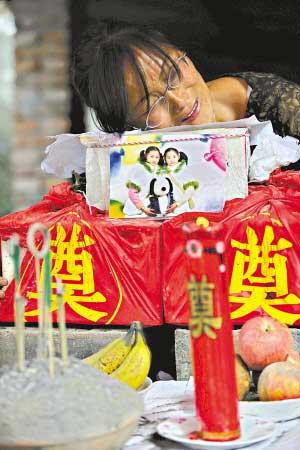 赵德琴抱着双胞胎女儿的骨灰说:“我们10天没见面了。”