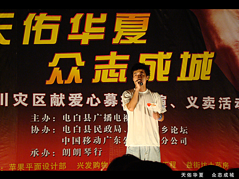 转转折折,以为这场义演就要夭折了。在22号才确定23号就能举行。如此仓促还能有如此效果,多亏各位网友的支持。在这要特别感谢几个网友的支持的,没他们可以说这晚会无法进行的。老V,蛙子,奶茶。在这我也代表不了谁,我代表我自己先感谢你们。我知道你们的付出不比我少的!当然还要感谢这场义演的所有演员,所有义工!所有对这场义演出力的朋友!