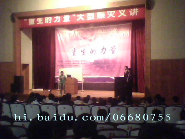 FRANK 深圳同乡社区 荣誉会员 注册 2005-10-30 消息 1,963 反馈评分 1 点数 61 2008-06-02 #1 2008.5.31 五月份最后的一天,也刚好是周末. 深圳南山党校举行一场"重生的力量"大型赈灾义讲.由著名的杜云生老师主讲. 现场有亲身参加救灾的深圳义工等,还有来自北川地震现场的幸存者. 附件 IMG0224A.jpg 60.2 KB · 查看: 182