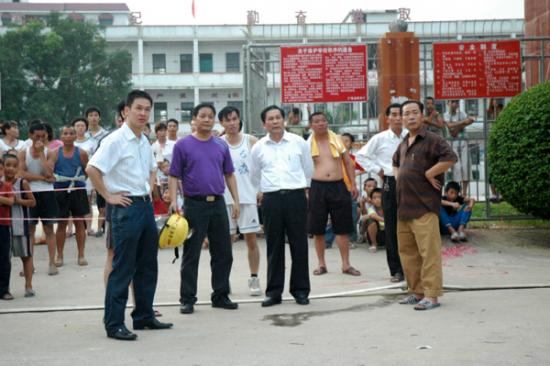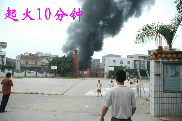 “一楼面对大衙中心小学的铁门被烧炸得严重变形。”胡说八道。上图左边的楼房比学校门口还近几米,还是白白净净的,火怎会去烧远处的铁门,吃饱撑的?从起火到火被扑灭,我一直在现场。学校早就放学了,哪还有几个学生?县长几乎是同消防队一起到达,县长到的时候火已经烧四五十分钟了,谁疏散谁?那天没有风,黑烟只向上滚,周围的建筑损伤并不严重。