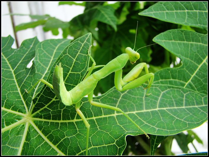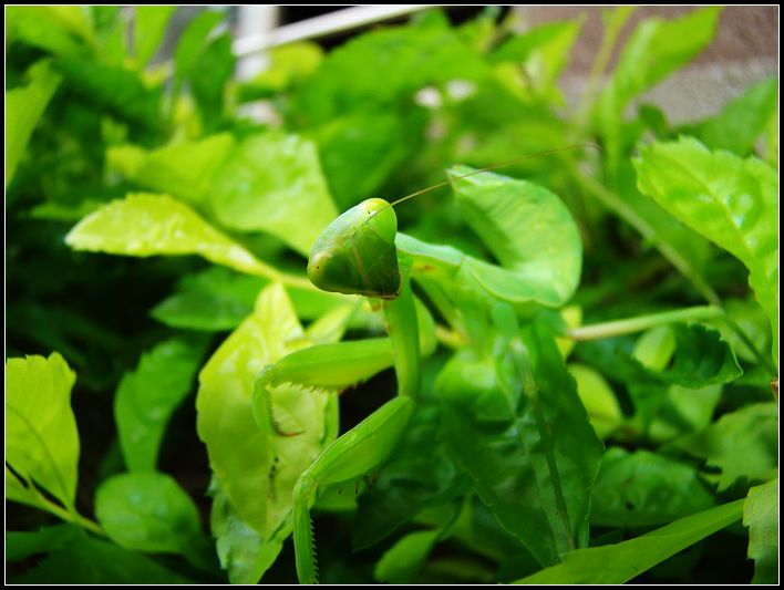那螳螂盯着我。