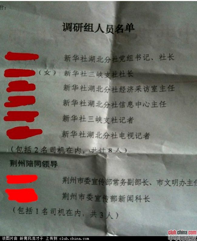 洪湖市委接待新华社领导 8人2天花4万(有文件有名单)(转) (2人在浏览)