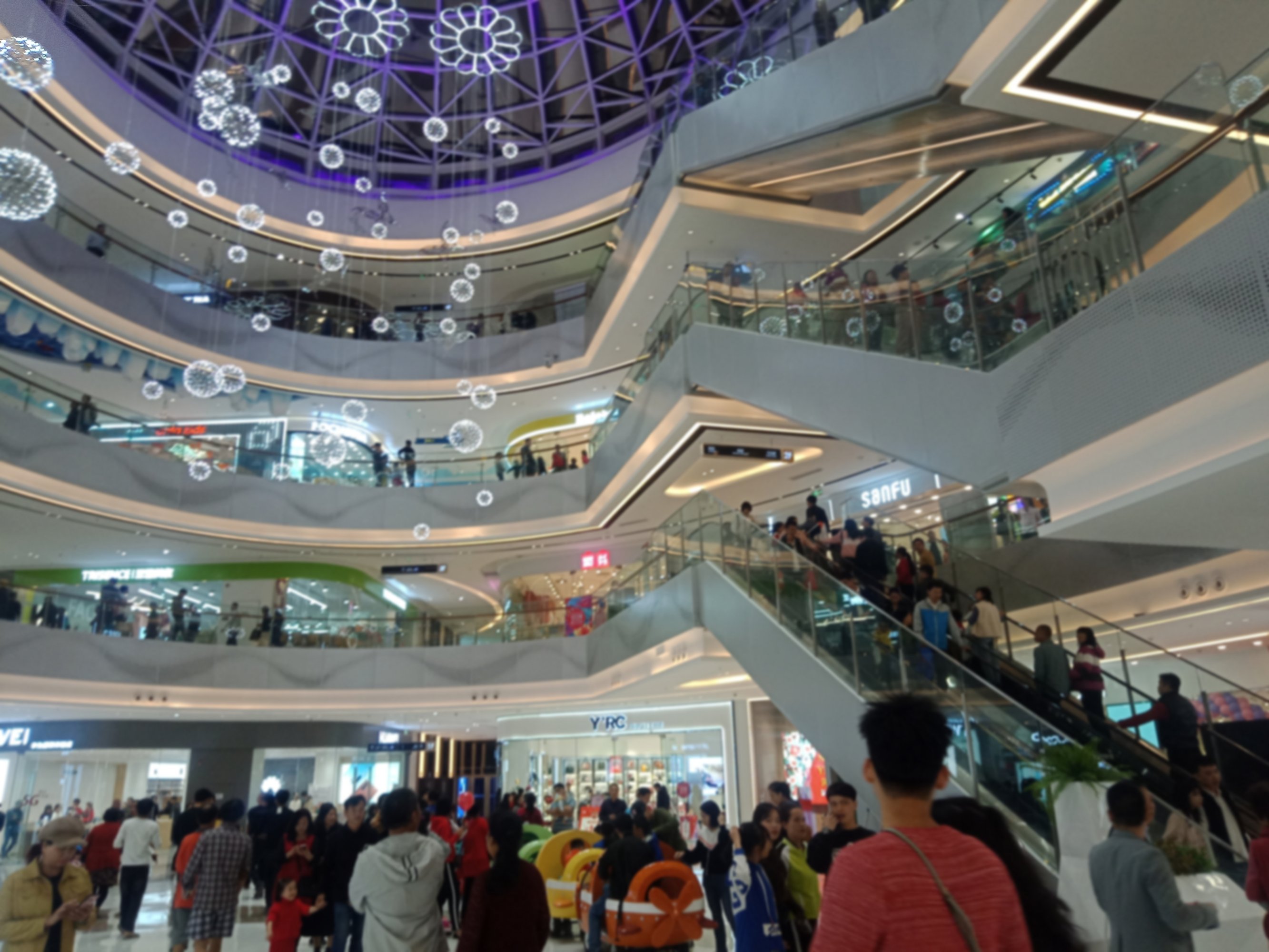 天下起雨了,外面要担雨伞,但依然有人向万达广场挺进,都湧进里面,只在一二层小范围看下,现里面好些人:biggrin: