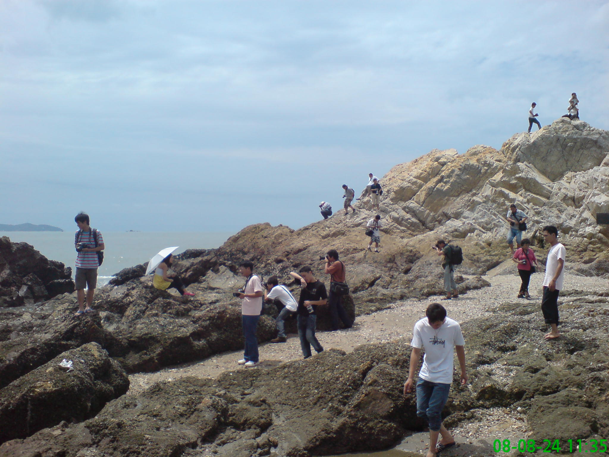 080824中午,龙头山海湾在许多摄影家或摄影爱好者在按快门,其中还有两名青春靓丽的模特亮出灿烂的笑容。据了解,这是茂名市摄影和佛山协会联合活动。其中一名摄影家说,这里的景色并不亚于全国名胜海滩。