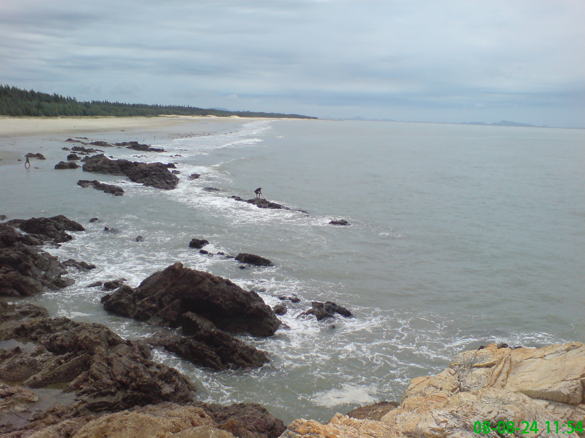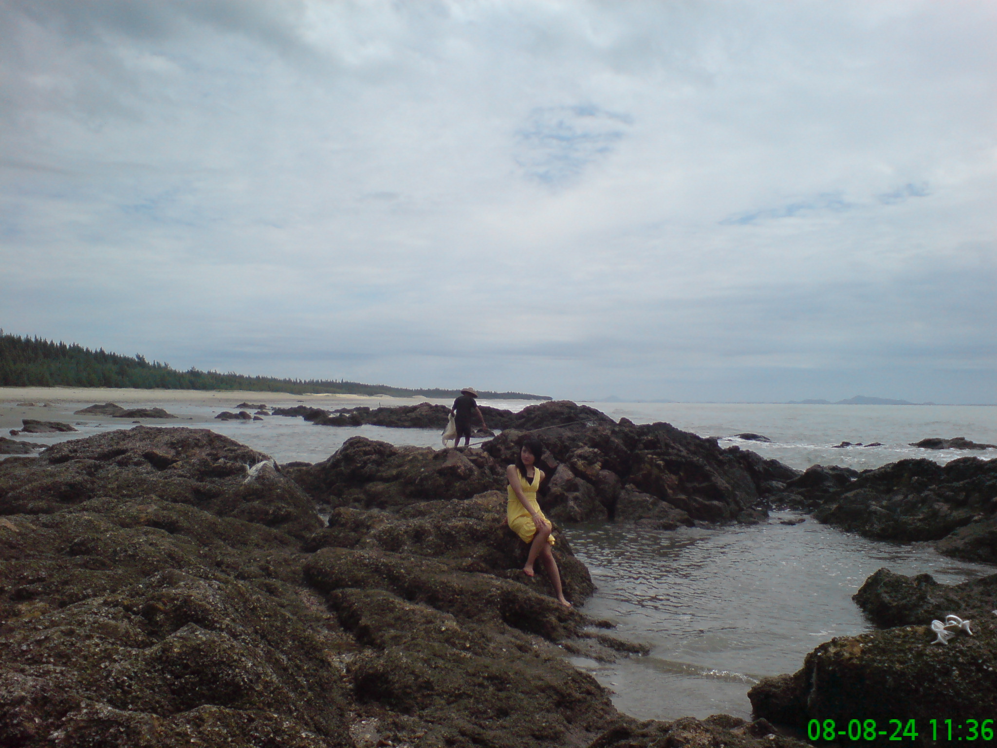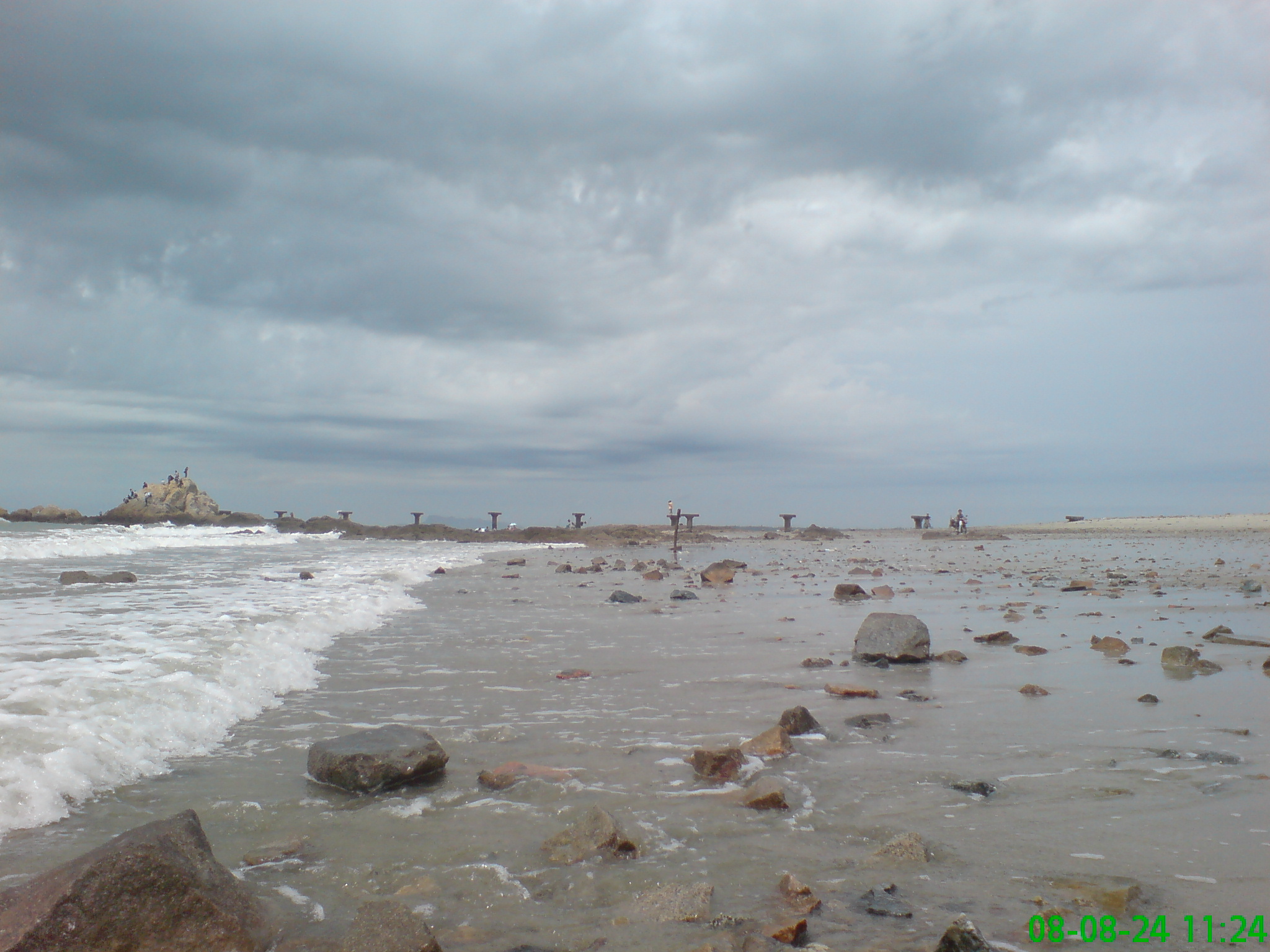 080824,我在此看见沙滩上布满石头和砖块,怀疑是乡为发展牡蛎所为,也可以是乱丢建筑垃圾所致。