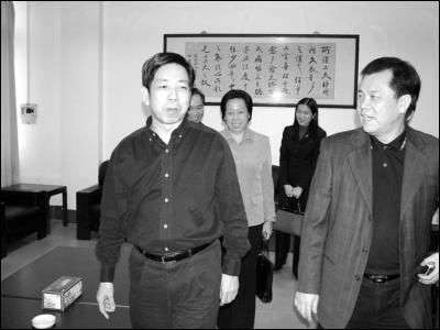 茂名市检察院检察长刘先进(右一)与电白县委书记潘本(左一)到电白县检察院视察。