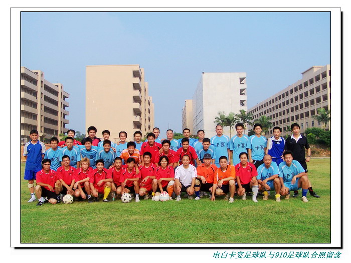 非常感谢茂名市电白“卡宴”足球俱乐部的真诚接待,为足球交流提供了极佳的 条件,为广大的足球爱好者创造了一次很好的赛事。 九十分钟比赛结束,910足球队以3:2小胜,胜负的结果并不重要,最重要的 是双方促进了两地的足球交流,促进并加深了两地足球爱好者的友谊。 诚挚欢迎“卡宴”足球俱乐部日后到吴川作客,再进行一次友谊赛。 以上全部转自http://910fb.blog.163.com/