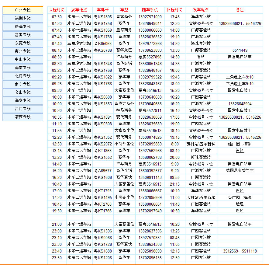 收集电白地区所有长途客车发车订票信息(广州、深圳、珠海......)