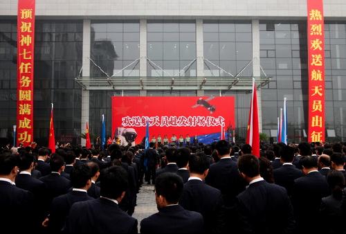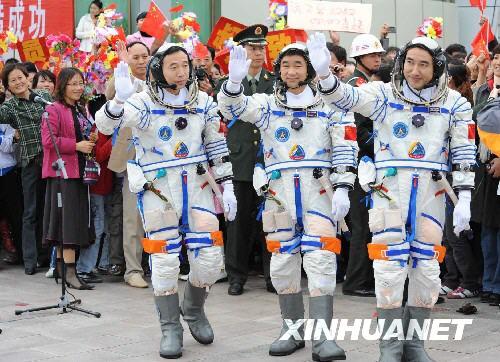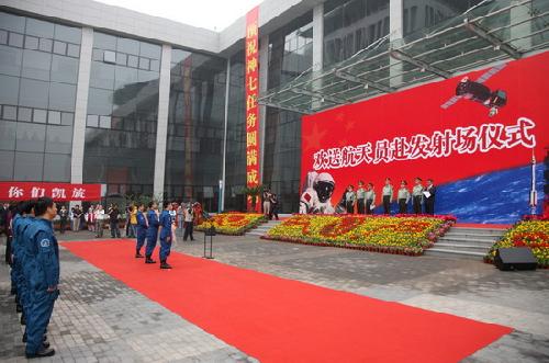 翟志刚、刘伯明、景海鹏同志你们好,神州七号飞船就是按原定计划发射了。你们即将出征,执行我国第三次载人航天飞行的任务,在这里我首先代表党中央、国务院、中央军委,也代表全国各族人民来为你们壮行,预祝你们成功!
