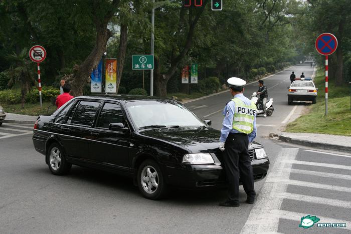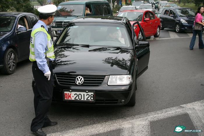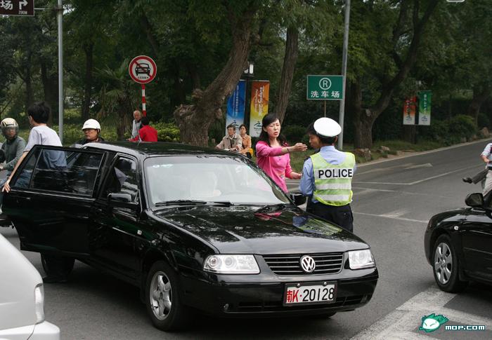 午10点路过南京中山陵前湖路口,看见一挂军牌车辆逆向闯红灯被交警阻拦!军车不听劝告!