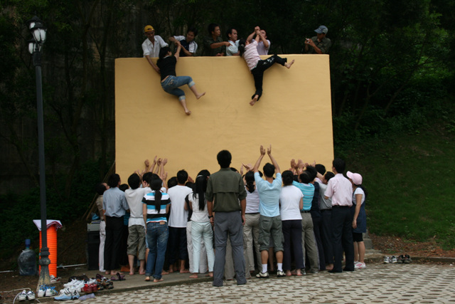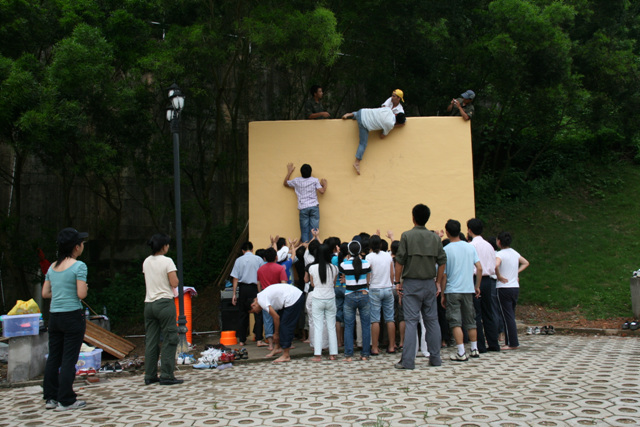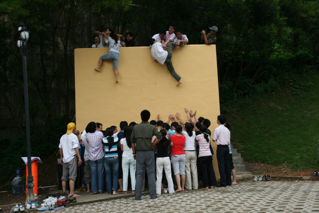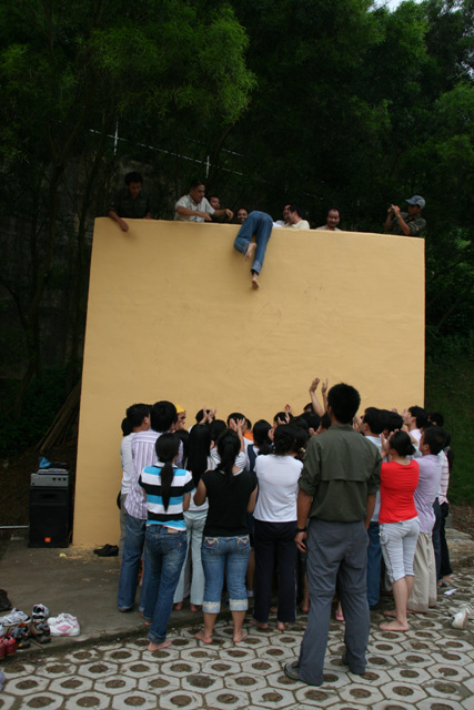 QUOTE(四中乐叔 @ 2008年10月29日 Wednesday, 09:54 PM) 2008-07-30深圳南澳拓展训练 [snapback]2529946[/snapback] 翻毕业墙,4米的墙,靠团队协助,把每个队员接上翻过毕业墙。