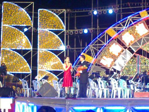 (广东无知地个地方)刘刚正在与一女歌手合唱好人好梦