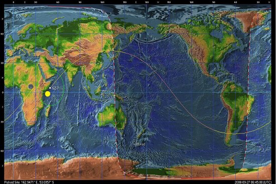 细心的人也许会追问,会不会和太阳角度有关?是的,在夕阳西下的时候我们看到的天空是红色,那是因为对着太阳看的时候蓝色光被散射掉了,剩下的太阳光就偏红。但翟志刚出舱的时候,飞船所在位置的太阳差不多正当头顶,在录像的下方,正好照亮地球。录像中的太阳能电池板这时候几乎垂直对着太阳,这是选择发射窗口时就要考虑到的,因为如果是在夕阳的条件下太阳能电池板就不能获得足够的能量了。实际上,根据美国国防部公布的飞船轨道参数(http://www.space-track.org/),翟志刚出舱的飞船位置在东经50.02度,北纬4.32度。北京时间16:45左右这个位置的太阳高度角(偏离当头顶的角度)是7.03度,见图:(附件3)