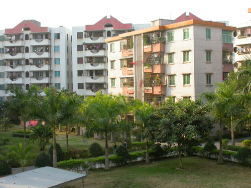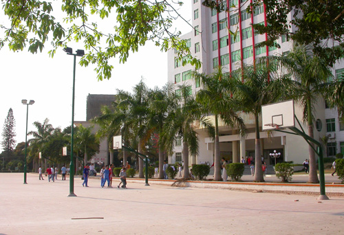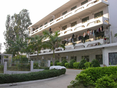 另一边的宿舍区,那栋宿舍应该是翻新过了,记得以前很旧的...