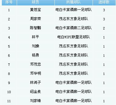 1 黄佰宝 电白卡宴酒廊一足球队 3