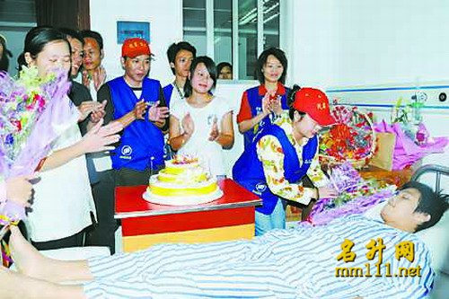 得悉11月10日是蒋东先的生日,茂名日报名升网、茂名义工团、茂名义工网、电白义工团、水东曙光旅店、茂名新创展公司、茂名南粤科技学校、电白尚品公司、电白爱丽家公司等,联合发起“为阿东唱生日歌”的活动。昨日,200名热心市民汇聚市文化广场,市园林局提供活动场地,嘉豪轩提供生日蛋糕,沃尔玛提供音响和矿泉水及果篮,周时来提供照相服务,飞鹿广告提供横幅标语,义工团及义工网的成员们则分工合作,布置场地。下午2时许,200人排列于生日蛋糕前,齐唱《生日歌》,同祝蒋东先生日快乐,气氛热烈而温馨,虽然此时蒋东先尚躺在医院的病床上,但大家都希望祝福的歌声能飞到他的身边。