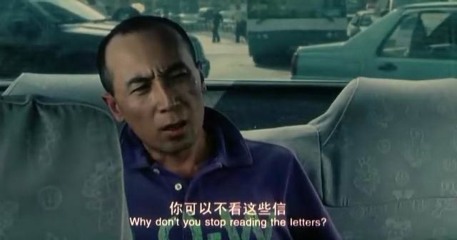刚到这里的时候。我也是木然的。误认为是女主角一号李米的神经质表现。后来结合了剧情介绍和看到后面,我才一下子明白。这是拍摄的一个手法。女主角一号李米以这种方式在寻找着她的未婚夫――男主角方文。 李米将方文的相片全部都贴在一本杂志上专门放在后座前,供所有乘客阅看。然后她把这个故事告诉每一个乘客,甚至会问每位乘客是否见过或认识方文。她不确定这种方式是否有效,但她没有放弃。