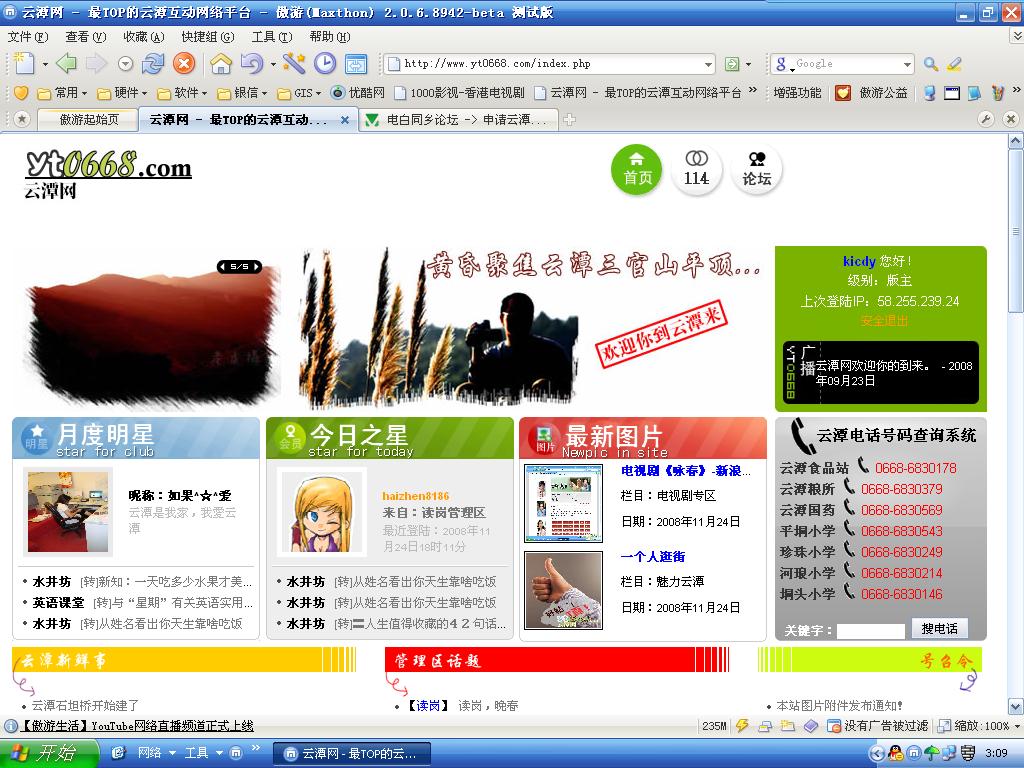 kicdy 学前班 注册 2008-11-22 消息 96 反馈评分 0 点数 0 2008-11-25 #1 http://www.yt0668.com 作为一个名镇,旅游资源算丰富,人才辈出,大家可以相互交流! 附件 云潭网.jpg 159.2 KB · 查看: 407