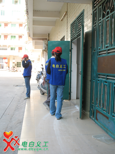图中的一女义工穿着几寸长的高跟靴干活,不怕拗脚啊