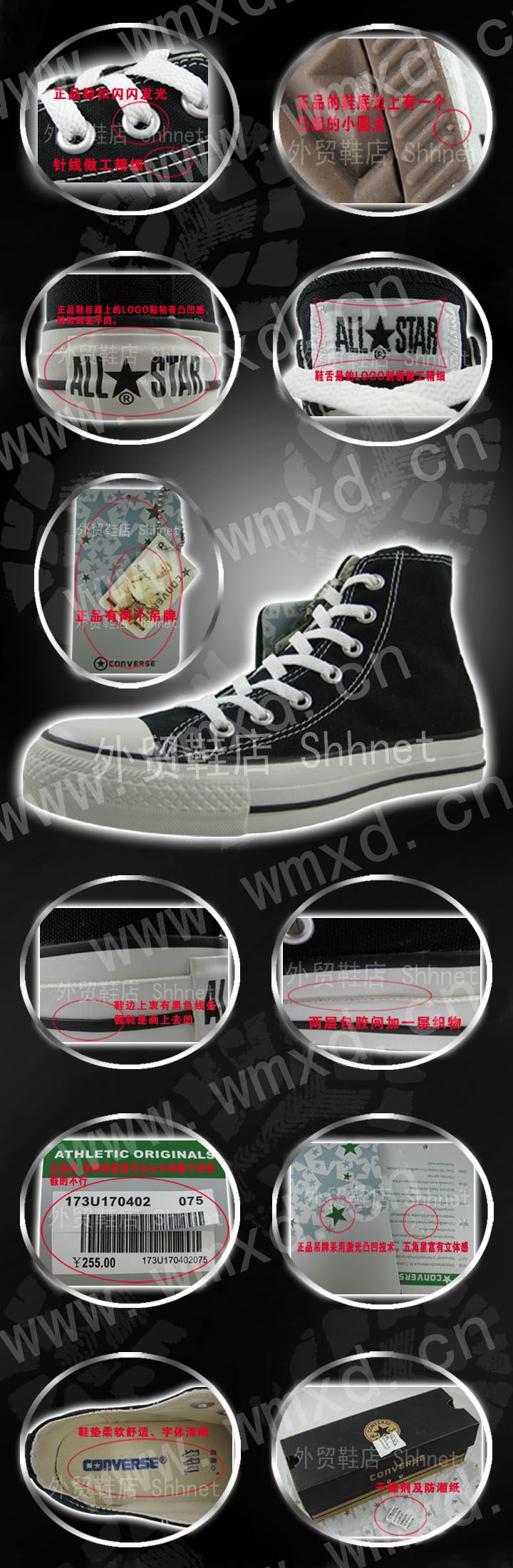 本店所售匡威帆布鞋均包装齐全带吊牌的专柜正品!新店开张全部不赚钱销售!欲购匡威帆布鞋的朋友要赶紧下手!~~专柜200多元因为有高昂的店铺租金,其它卖家100元左右,因为他们要赚钱!!同样的商品,我们只要68元!~超级宝贝底价销售了!!大家还犹豫什么?如收到的宝贝,与细节描述不符,我们承诺无条件退货(不影响再次销售)邮费我们承担!!请大家拍前咨询客服码数,以免发生断码的情况!因为鞋码引起的费用,将由买家自行承担(匡威帆布鞋都是小穿1码的!~)大家也可到专柜试穿后再行购买!