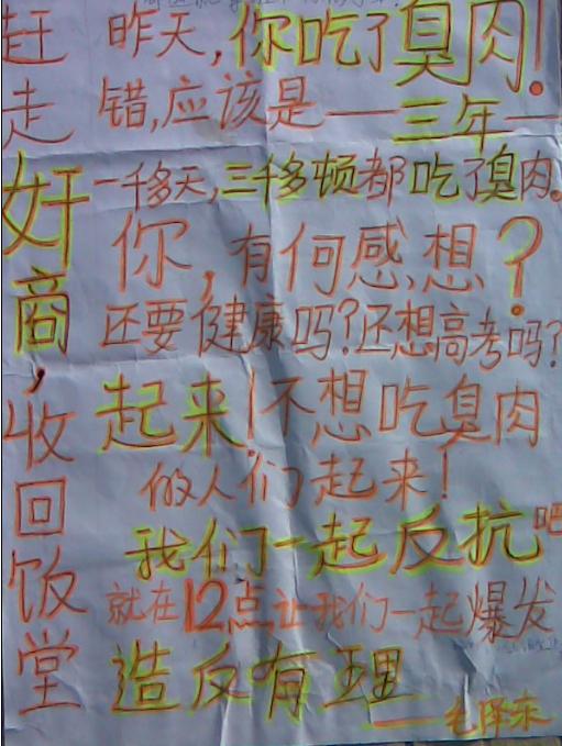 学校领导都是只会用嘴说说``我们学生多次投诉都没用``什么差的垃圾食品都是给学生吃``忍不了就只能反抗了