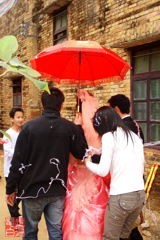 第一次见男的为新娘打伞。这种活儿,一般不是由媒婆或伴娘干的么?