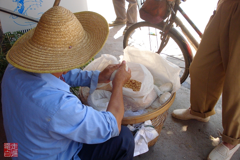 外面是糯米做的皮,里面的馅是花生、糖粉,吃起来一定很香甜。很想吃吃,只是暴晒了一天,牙齿隐隐作痛,没口福了。