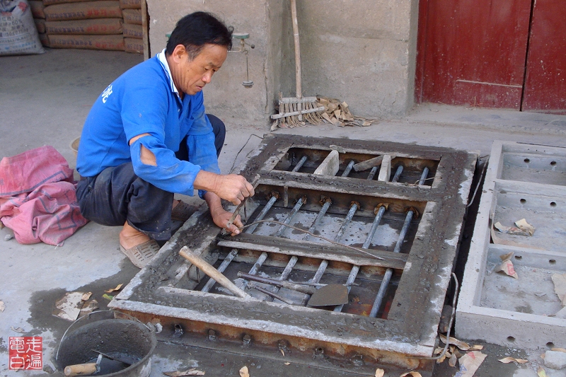 《制作老式水泥窗的工人》