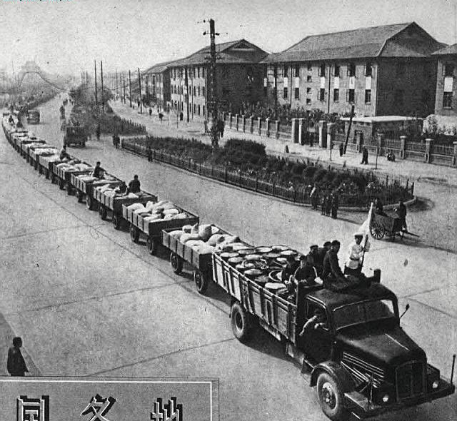 解放牌的威力:大跃进时期的解放,拖带50辆挂车,总载重156.5吨,行驶时速30公里,当时算是放卫星。