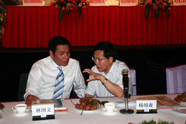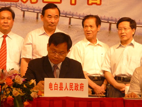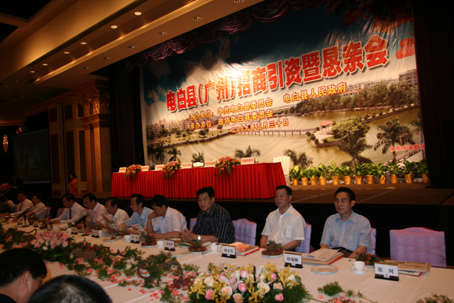 热烈祝贺2009年度电白县(广州)招商暨恳亲会取得圆满成功! 树仔籍知名企业家林国文、吴飞鹏、蔡国强、梁文生、高庆辉、林繁华、邵健伟、林育生、林宜生、梁福天、邵葳钰、陈土家、邵国成、詹保鸣、陈伟国、邱邝、邱那、邱京、林荣华、吴国明、林树章、林作、邵表、苏国生等社会知名人士出席了会议。
