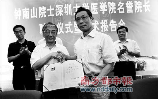 钟南山任深大医学院名誉院长刘玉浦力邀,钟南山称愿意出力并希望深大医学院办出特色类别:国内新闻 作者:刘荣 原创 浏览量:115  发布时间:2009-06-23