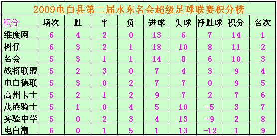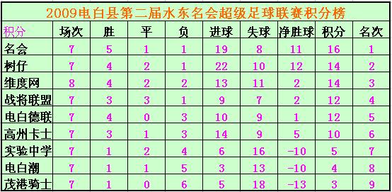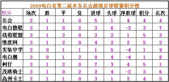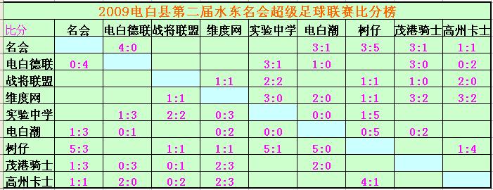 2009-08-23 09:00 茂港骑士足球队 - 电白树仔足球队 电白中学足球场 2009-08-27 16:15 电白中学足球场 电白德联足球队 - 电白树仔足球队 如果这两场树仔赢了就是联赛冠军了