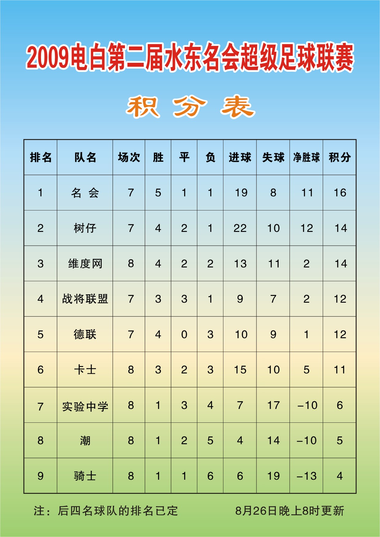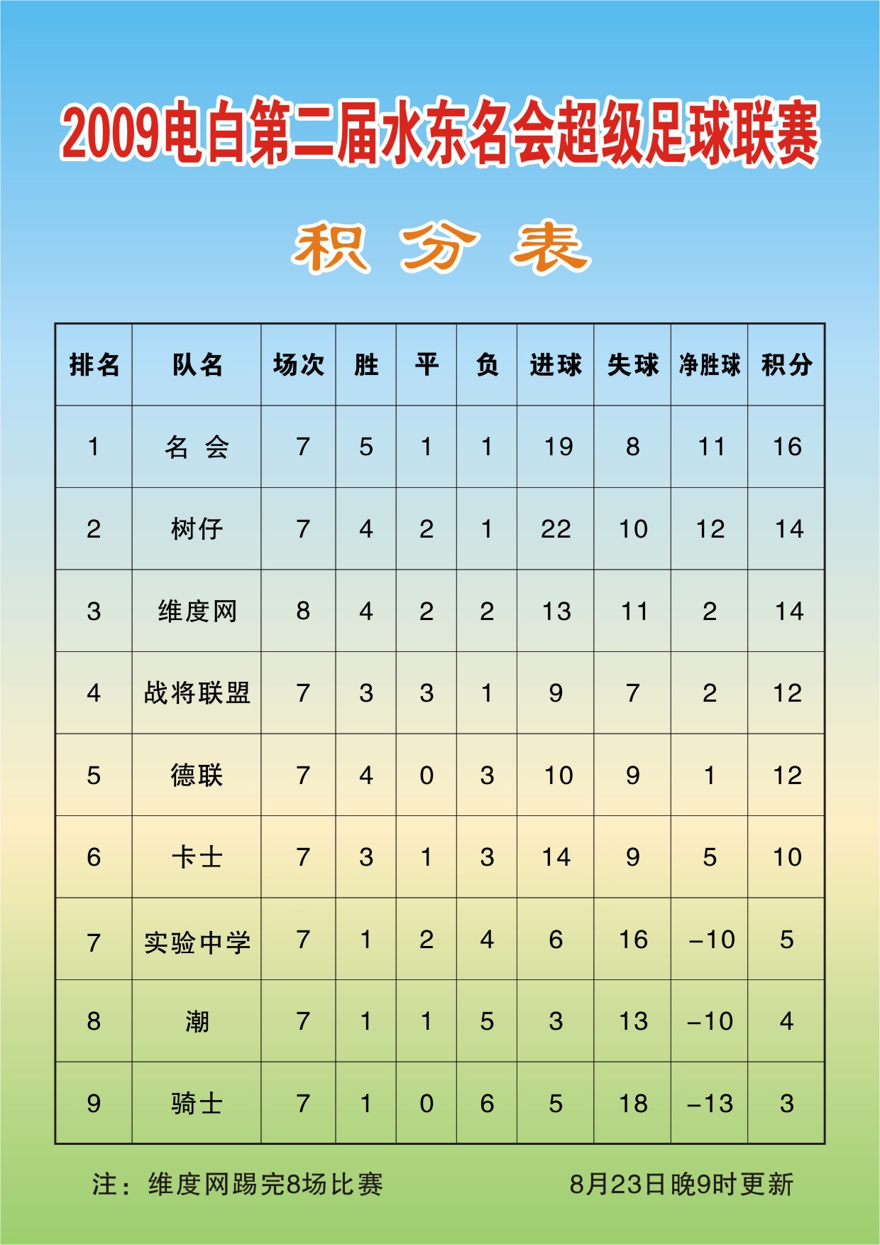 2009年电白县第二届水东名会超级足球联赛-积分表