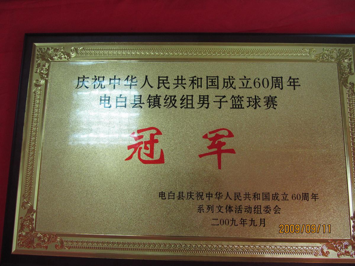 9月10日晚上,在电白县庆祝国庆60周年篮球赛决赛中,树仔镇代表队以75:72战胜水东镇代表队,时隔13年后再次夺得全县冠军。