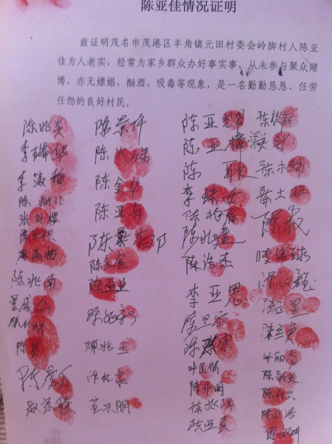 虽然本人最后因事实不清、证据不足被释放,身体上的伤痕也可以愈合,但无辜刑拘的经历如今依然历历在目,惨痛经历现在回想起来依然后怕。如今还有陈亚佳、李亚球、何亚樟、李亚平等无辜人员依然被关押,我只想把看到的事实真相说出,帮助其他无辜人员能被早日释放!请领导同志依法监督,督促办案人员依法办事,执法为民,早日查明事情真相!