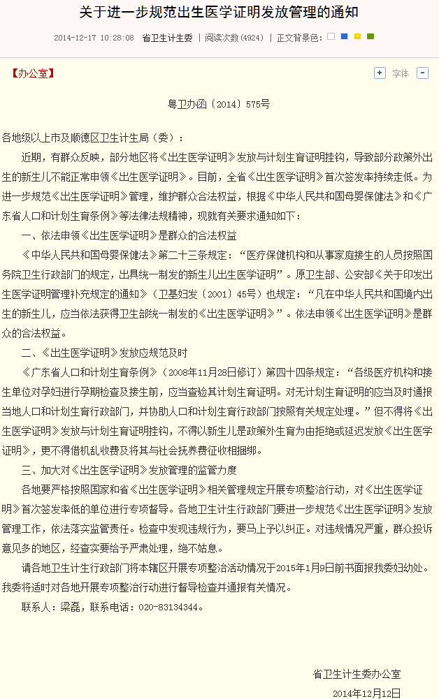 如今茂名政府罔顾国家大法,置省部文件若废纸,无视民情民意,一意孤行扣压、拒绝、延迟发放本应无偿发放给初生儿的《出生医学证明》。