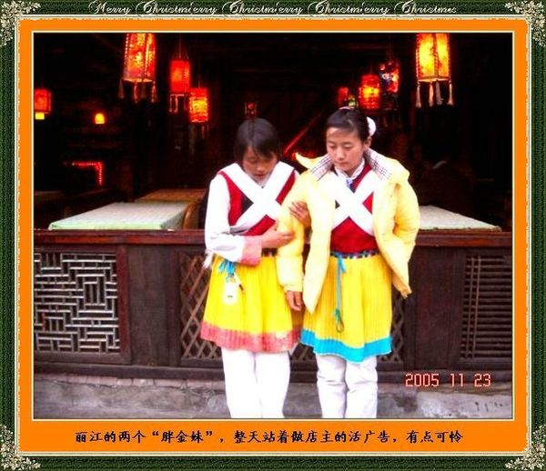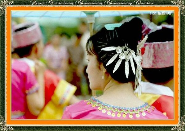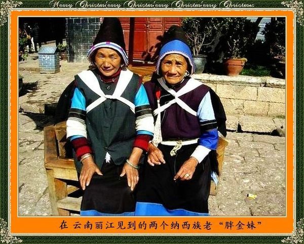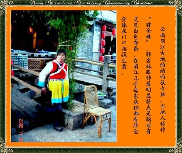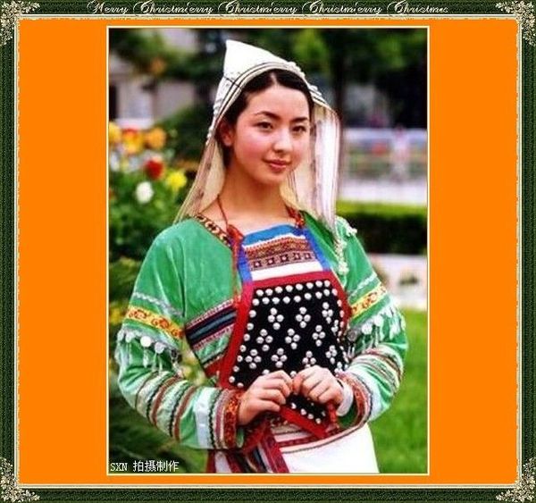 在世界遗产地云南丽江的纳西族MM的服饰特点为:帽子边上一个个白色的圈,在央视上好佳广告里天天看得到