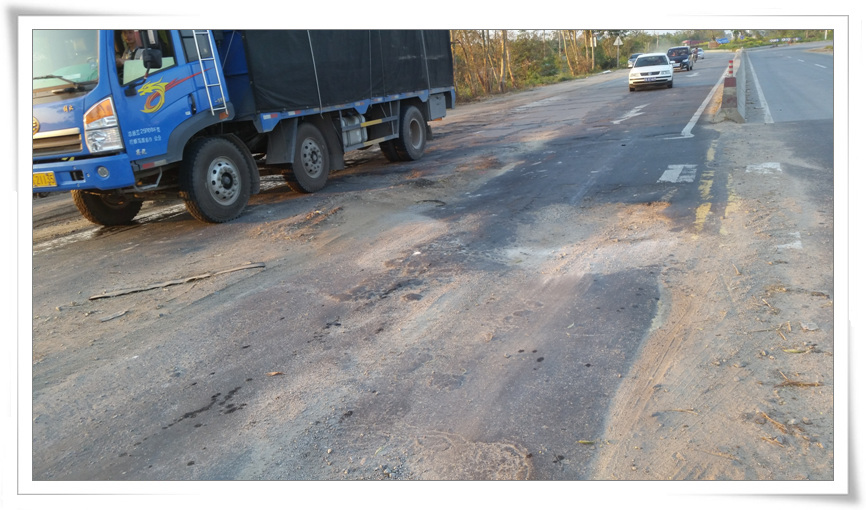 还有更烂的地方呢!旦场红花至麻岗之间那里有个地方,在快车道,有一个大坑!起码有十几二十厘米深,有一次不知道,开车经边那里,差点翻车了!如果开快点就真是翻车了!什么国道!