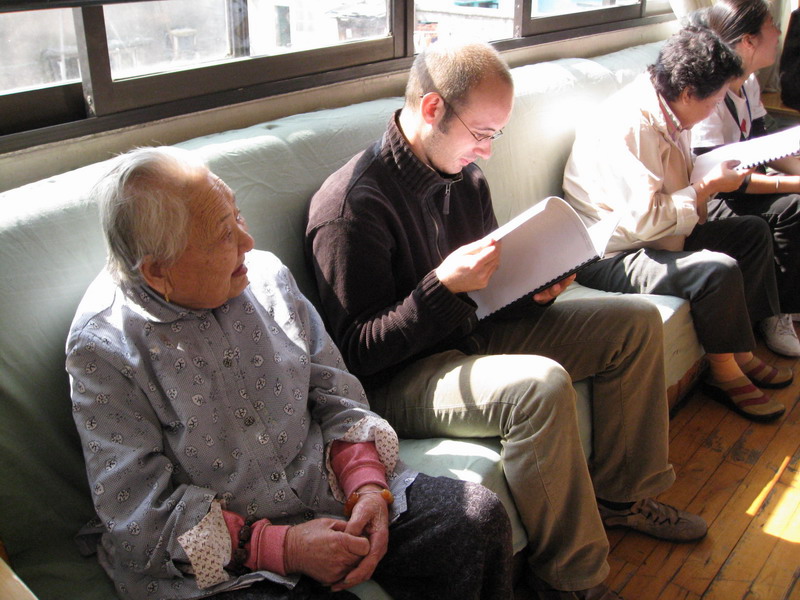 昨天我也忙了一天,其实昨天去的话意义也很大的,周五重阳节也是老人节,但周五很多人没空,所以都选了周六,我也将我昨天在敬老院看到感动的一幕发上来跟大家共享 就是一个女孩,扶一个走路不方便的老奶奶的时候不小心碰到了老奶奶的脚,当时她内疚的哭了 我们也有老去的一天,所以我们现在的行为直接会影响到下一代 跟我们一起到现场的还有我们的法国朋友