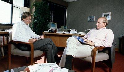 老照片:20年前,鲍尔默与比尔・盖茨在一起。盖茨把自己与鲍尔默的关系形容为“最伟大的商业合作伙伴关系之一”
