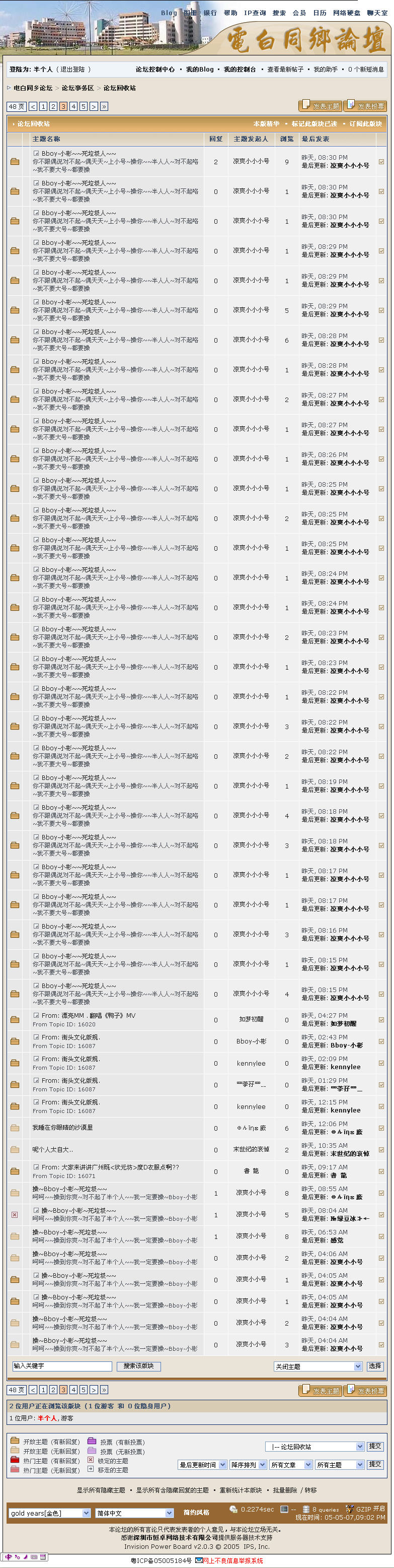 这次影响非常恶劣,他注册了四五个小号发了近200条骂人的主题,涉及校园区和休闲区的所有版块,害我这两天晚上删贴删到手软,我昨晚在古仔家玩,打开他电脑上网一看全屏都是这种帖子,就很恼火,封了他的ID和极速网吧IP,今天以为他会反省了,把IP解封了,没想到今晚又来发了50篇骂人的刷屏帖子,到处都是,影响非常恶劣。