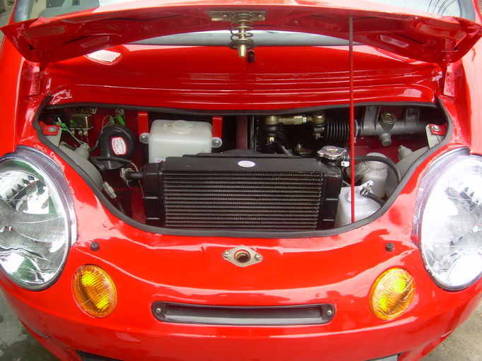 配置:赛车外观、汽车悬挂、CD音响真、空轮胎、5开门、发动机后置、轿车球笼半轴传动、遥控车门锁、6挡变速。轻骑牌,3200-1700-1420mm、10升油箱、方向盘转向、C空轮胎、遥控5开门、天窗、冷暖风机、水冷发动机后置、轿车球笼半轴传动、6挡变速、百公里油耗3公升、准载3人。
