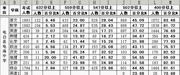 电白县电海中学 语文 1883 122 6.48 433 23.00 528 28.04 849 45.09 1572 83.48