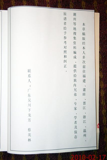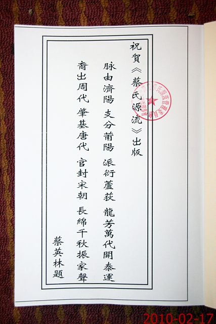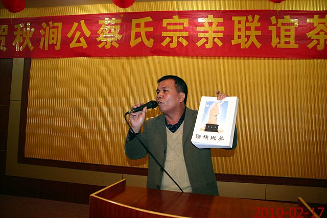 QUOTE(李淑珍 @ 2010年02月18日 Thursday, 03:40 AM) 是否参加的人大部分都是姓蔡的? [snapback]2929800[/snapback] 是的! 是蔡族宗亲会,共聚同姓情,商议同姓事.