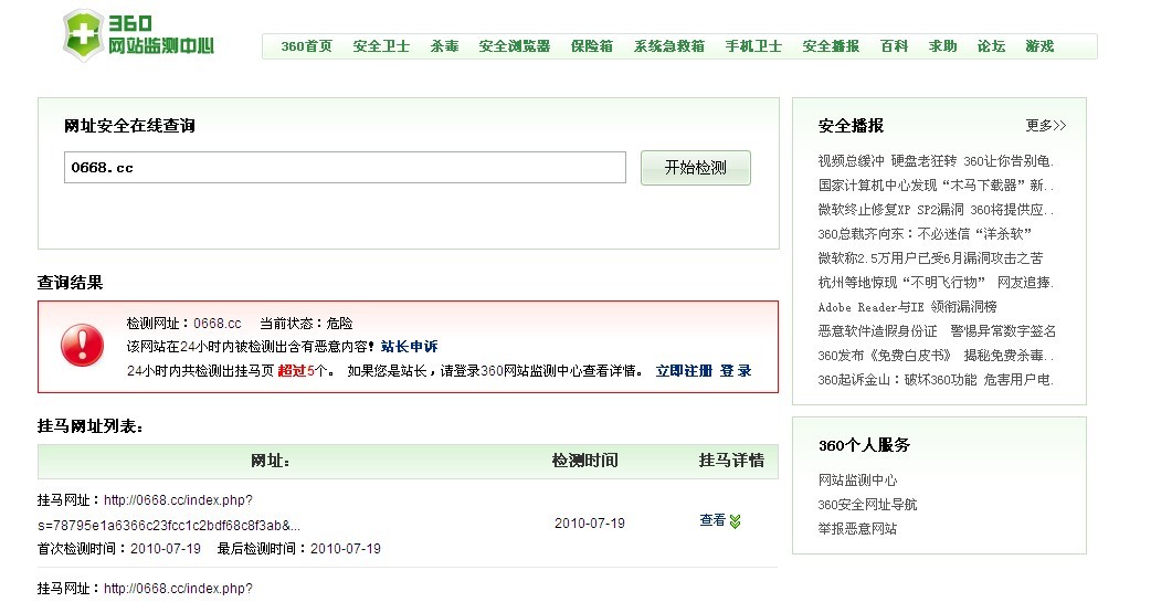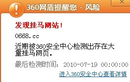 QUOTE(admin @ 2010年07月19日 Monday, 10:03 PM) 因有人在贴图区引用了来自bbs.enoya.com(此网被360列为黑名单)的图片导致被误报,其实并不对本论坛造成安全威胁,现已清除链接,请放心使用。 [snapback]3002021[/snapback] 还是有警报咯