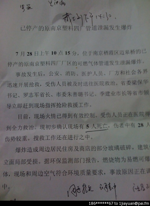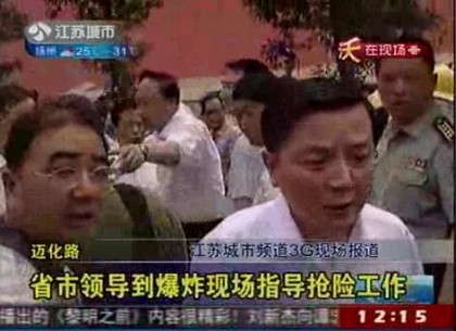 网友深喉再次核实,“哪个让你直播的”官员极可能是徐光辉,江苏省委办公厅副主任。另据南京电视台生活频道记者称,今早南京大爆炸现场直播中,挡镜头的指示是南京市委宣传部部长叶皓下达的。