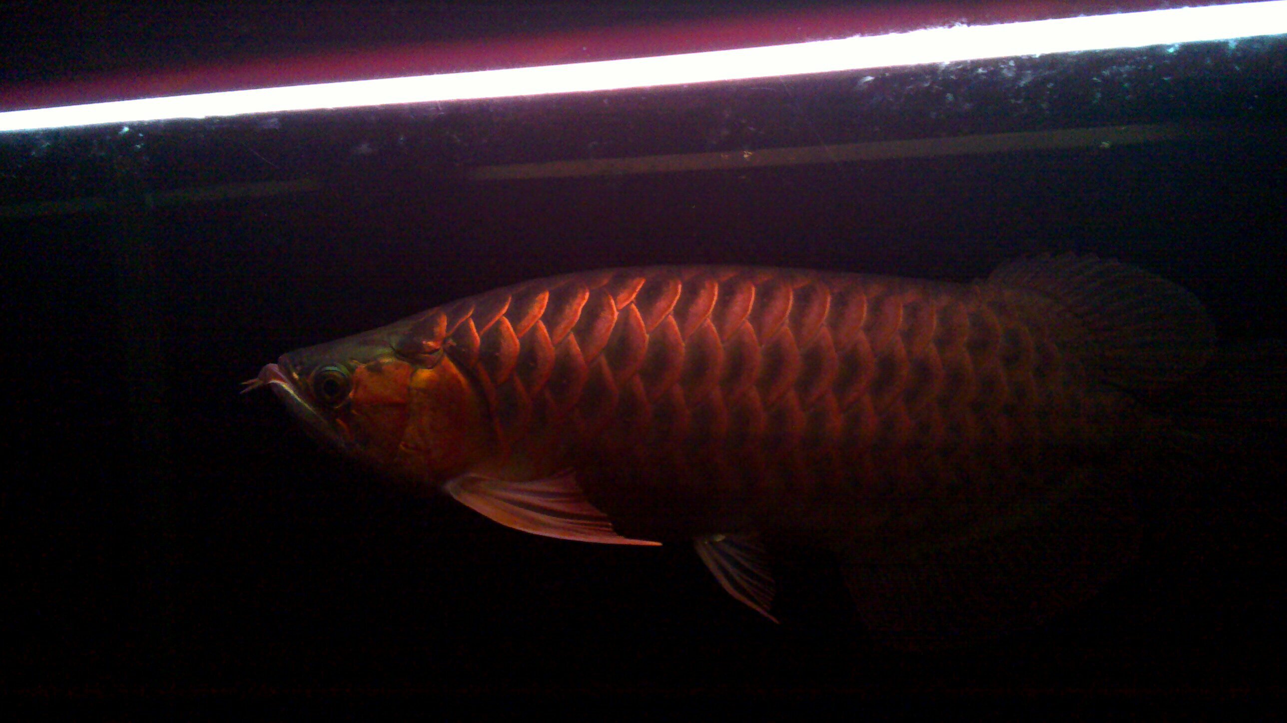 QUOTE(R @ 2010年08月15日 Sunday, 11:39 AM) 不错的绿皮辣椒,后三鳍与胸鳍都非常漂亮,野生血统所占成分比较高,眼睛也保持得很好,发色很全面但照片效果灯光影响比较大,背部发色稍逊,绿皮发色远不仅如此的,可能早期幼鱼时被鱼商压得太厉害,被楼主进回来后喂食太暴,拔苗助长生长过速所致,建议日后喂食宜精而少,同时水质硝化系统似乎欠佳,有待保持稳定与提高,个人片面看法,不作参考! [snapback]3015474[/snapback] 楼下的看来你对龙鱼很有研究呀!