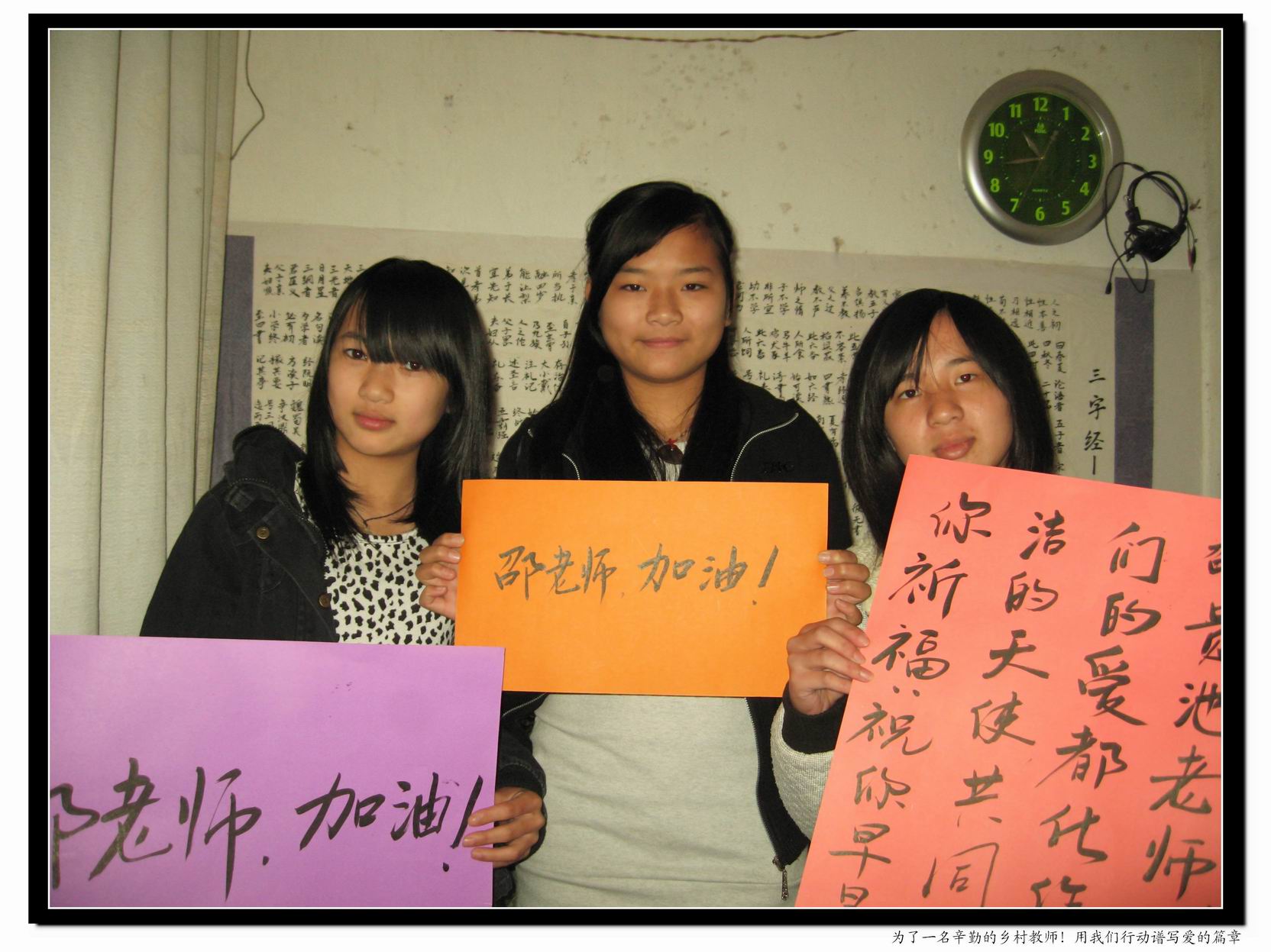 刚出校门的时候我就去了邵老师的家看看,并拍了些照片。走进那间屋子和那个厨房,我突然感觉有种莫名的辛酸,但同时我又不能否定这个事实:这就是一个乡村教师的家,他的一切都在这里。邵老师的女儿也在家,爸妈都不在身边,懂事的她却每天默默的把这个曾经幸福的小天地收拾得干干静静。当我说要给她拍照的时候,她马上站好位置,因为听说我这个大哥哥可以帮助她爸爸。哪种眼神,让我突然会有种无奈,我真的能给她带去希望吗?